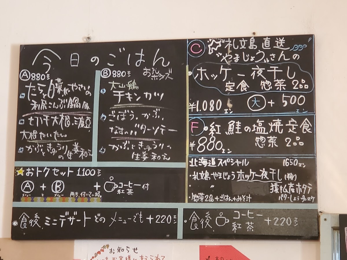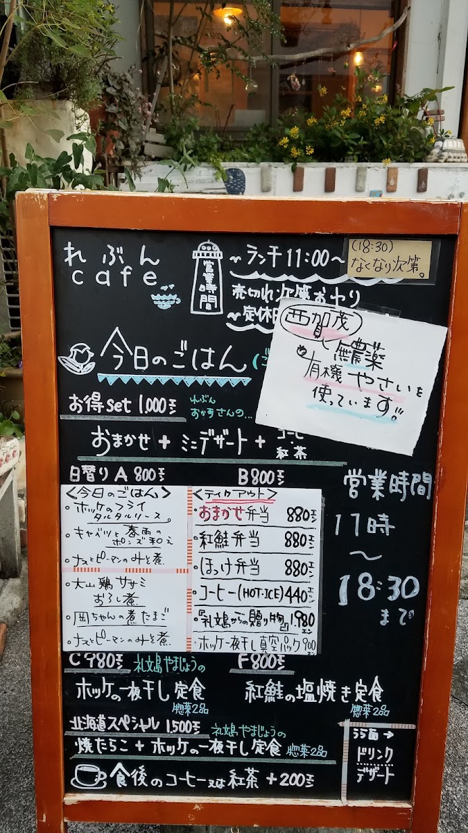 Rebun Cafe is known for its delightful, home-cooked style meals that reflect the heart of Japanese comfort food. Expect to be greeted by an array of dishes that change daily, keeping every visit fresh and exciting. A standout option is their 日替わりランチ (daily lunch set), offered in two variations, which can range from the health-conscious to richly satisfying offerings like the savory 豚バラ肉の天ぷら (pork belly tempura), perfectly seasoned and complemented by a delectable sauce. The choice of flavors is diverse enough that you'll likely find something delightful each time you visit.